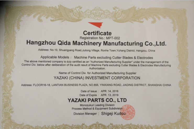 世界500強企業(yè)-日本矢崎為我公司頒發(fā)的認證證書